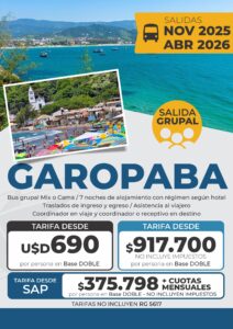 Salidas grupales sujetas a formación de un grupo con un mínimo de 30 pasajeros.